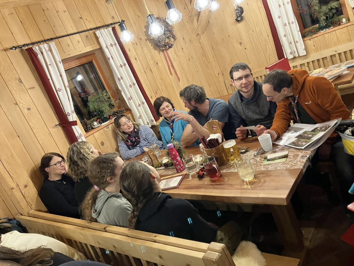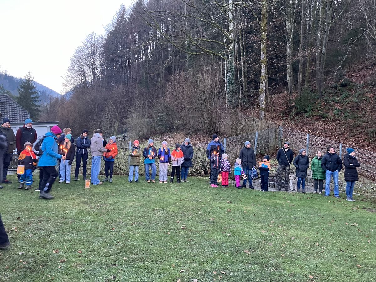 Im Anschluss folgte die Adventnachtwanderung. Dieses Jahr luden wir dazu alle ehemaligen und aktiven Leiter*innen sowie Funktionäre, die Gilde und unseren Gründer ein, um uns auf unserer Wanderung zum Hause „Ekamp“ zu begleiten.